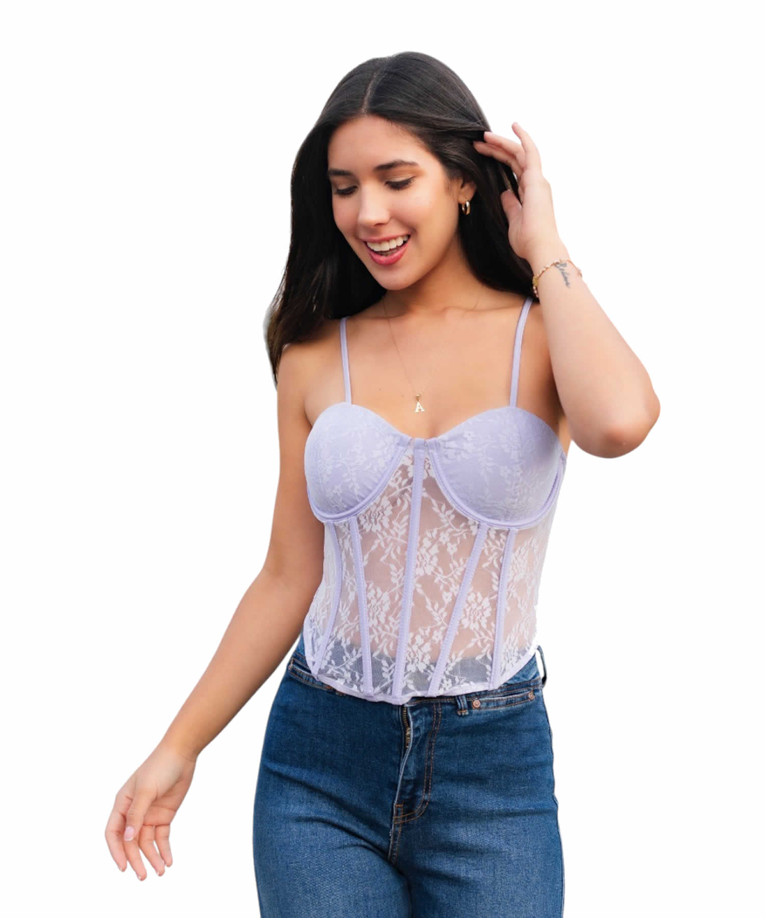 Descubre el equilibrio perfecto entre sofisticación y sensualidad con nuestro corset de encaje lavanda. Diseñado con delicados detalles florales y estructura tipo bustier, este modelo realza tu figura con estilo y comodidad.