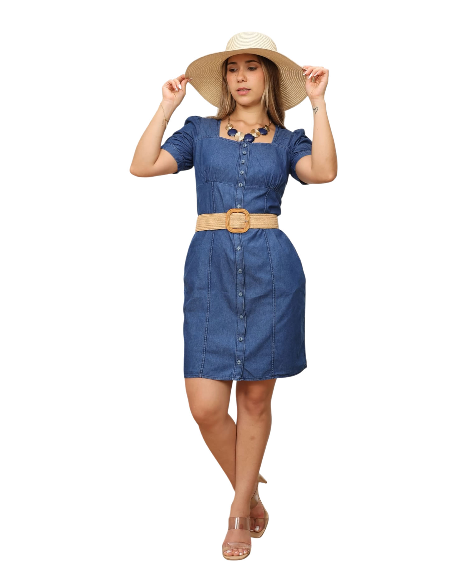 Este vestido combina la versatilidad del denim con un diseño moderno y coqueto, ideal para quienes buscan comodidad sin perder elegancia.